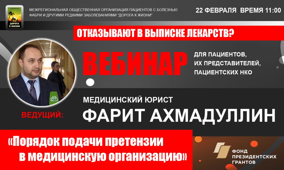 Межрегиональная общественная организация пациентов с болезнью фабри и другими редкими заболеваниями "Дорога к жизни" в реализации значимого проекта «Межрегиональный центр досудебного решения вопросов льготного лекарственного обеспечения» использует средства государственной поддержки, выделенные в качестве гранта в соответствии с распоряжением Президента РФ, предоставленные Фондом Президентских грантов.